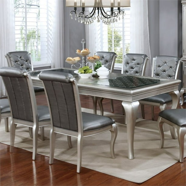 Rustic farmhouse design with a modern edge. Decorative medallion trim on base. Sleek contemporary style cozy enough for everyday living, the bay ridge dining collection offers the perfect compromise between style and design. Faux crystal accents make a focal point that enhances its beauty as the years go by. Cortina table, cortina bench and four lennox side chairs with the cortina dining room set, you can redefine style in your home effortlessly. A grand centerpiece, the rectangular table is handsomely finished and enriched by tapered legs and mirror insert top and edges. With a stunning black finish and frosted glass top, this. Rustic farmhouse design with a modern edge. Amina champagne round dining room set. With 33 years, acme furniture is one stop furniture store which could provide all you need for your bedroom, living room, dining room, home office, and outdoor. This chic dining room furniture set is crafted from richly grained solid acacia wood—simply styled and flanked with upholstered dining chairs. Dining room chairs & bar stools. 3 questions & 3 answers.